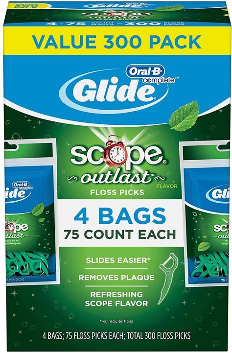 Glide Oral B Floss Picks Plusx 40mm Outlast - Long Lasting Mint, 4 Pack Of 75