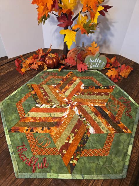 Fall Quilted Embroidered Octagon Table Topper Runner