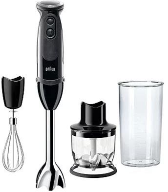 Braun Multiquick 5 Immersion Hand Blender With Dual Speed + Turbo And Patented Technology, 350W - Includes Beaker And Whisk, Black, MQ505(Soup,Baby Food,Mixer,)
