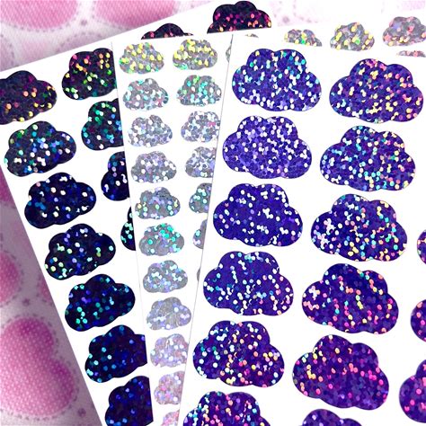Vinyl Holographic Cloud Stickers, Puffy Cloud Stickers, Planner Stickers, Vinyl Stickers, Nature Stickers