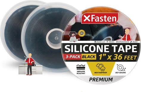 Xfasten Self Fusing Silicone Tape Waterproof Black - 1" X 36 Feet (3-Pack 108Ft), Self Amalgamating Tape, Silicone Rubber For Plumbing, Sealing Pipes,