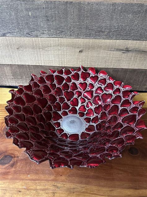 Heart Pattern Art Glass Bowl - 15" Wide