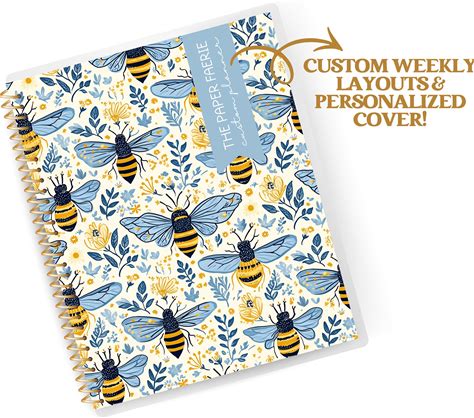 Golden Bee 12 Month Planner - Choose Start Month, Disc/Wire Binding, And Choose Weekly Layout, With Trackers Vision Board