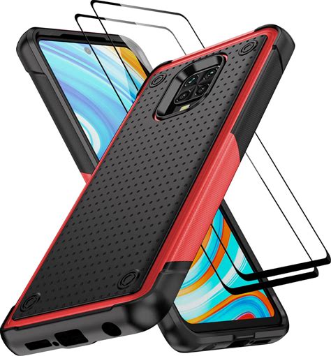 Jeylly For Xiaomi Redmi Note 9 Pro Case With Tempered Glass Screen Protector [2 Pack], Heavy Duty Shockproof Protective Phone Case For Xiaomi Redmi