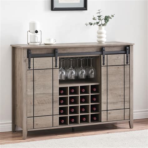 47 in Kitchen Coffee Bar Cabinet W/16 Wine & Glass Rack, Storage Shelves Farmhouse Wine Bar Cabinet W/Sliding Barn Door Large Rustic Buffet Sideboard