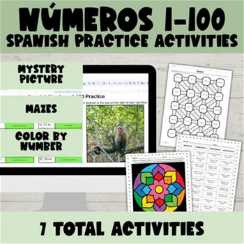 Spanish Numbers 1-100 Los Numeros Practice Activity Digital Printable Worksheets