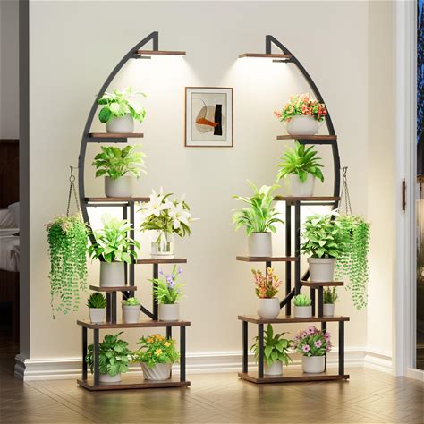 Plant Stand Indoor With Grow Lights: Large Plant Shelf For Multiple Plants, 2 Pack Plant Racks 7 Tiered, Lighted Corner Flower Stands Half Moon, Black
