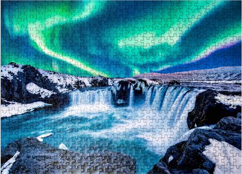 Mypuzzle Northern Lights Over Godafoss Waterfall In Iceland - Premium 1000 Piece Jigsaw Puzzle For Adults